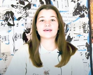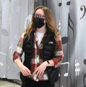 “好了,同学们,你们可以为我唱这些音符吗?” Hastings College music education major Allisa Buck asks high school students in a music classroom at Harvard Public School in Harvard,…
